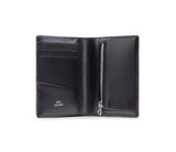 • 3 card slots on the left, zip coin compartment on right with 2 note sleeves under each side.